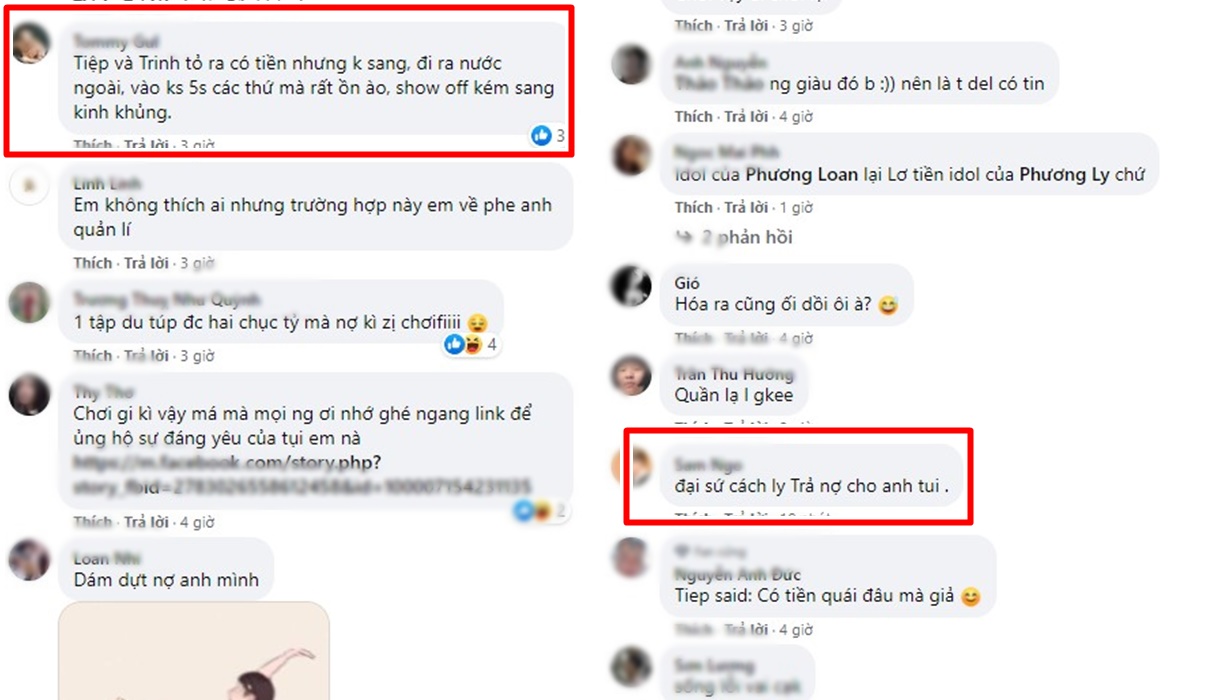 Thậm chí, nhiều tài khoản có lên án việc Vũ Khắc Tiệp và Ngọc Trinh thường 'khoe khoang' độ giàu có nhưng lại liên tục vướng vào những ồn ào. lùm xùm khó chấp nhận: "Tiệp và Trinh tỏ ra có tiền nhưng không sang, đi ra nước ngoài, vào khách sạn 5 sao các thứ mà rất ồn ào, show off (khoe mẽ) kém sang kinh khủng."