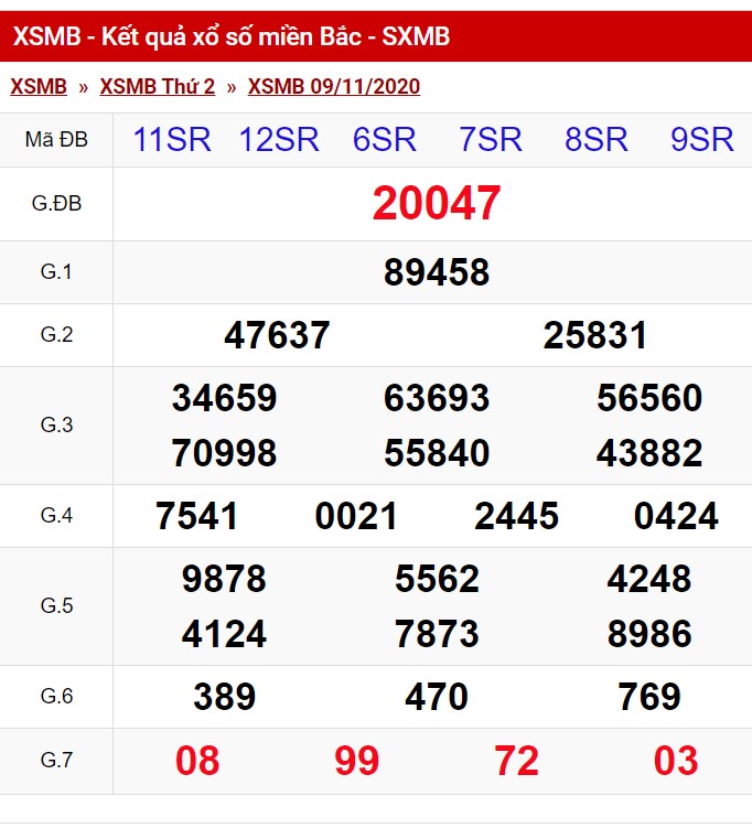 Kết quả Xố sổ Miền Bắc XSMB thứ 2 ngày 9/11 (Đang cập nhật).......