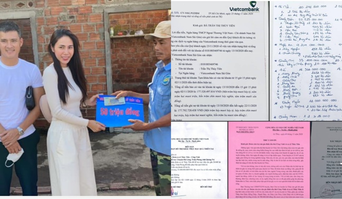 Trước những lời chỉ trích của antifan về cách phân phối tiền từ thiện cũng như liên tục đưa ra yêu cầu minh bạch tài chính, Thủy Tiên đã công khai các bản sao kê, các khoản thu chi cụ thể trong suốt quá trình trao quà cho bà con. Theo đó, Thủy Tiên giải ngân hơn 178 tỷ đồng, phát cho hơn 61.000 hộ dân ở 7 tỉnh miền Trung. Đáng nói, vợ chồng nữ ca sĩ còn góp thêm 3,7 tỷ đồng và tự bỏ tiền ăn ở đi lại trong hơn 1 tháng với số tiền là 250 triệu đồng để tránh những thắc mắc của cư dân mạng về việc cô hỗ trợ các hoàn cảnh đặc biệt.