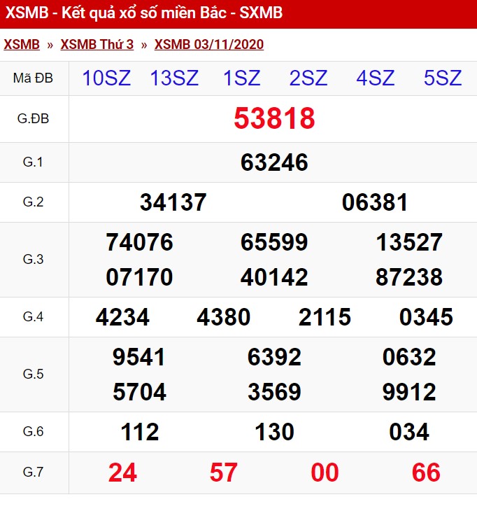 Kết quả Xố sổ Miền Bắc XSMB thứ 3 ngày 3/11 (Đang cập nhật).......