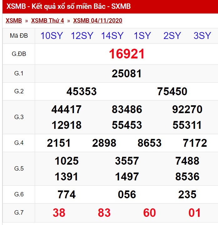 Kết quả Xố sổ Miền Bắc XSMB thứ 4 ngày 4/11 (Đang cập nhật).......