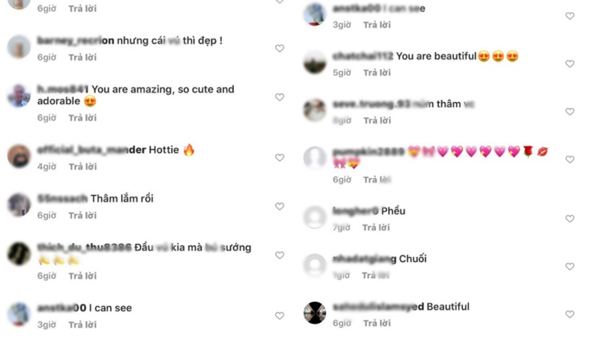 Bức ảnh này sẽ chẳng có gì khác biệt với đa phần hình ảnh mà Ngân 98 đăng trên trang cá nếu như cô không diện một chiếc áo ren quá mỏng, bám sát vào cơ thể. Nhiều cư dân mạng đã nhanh chóng nhận ra rằng cô nàng này đã ‘thả rông’ và để hằn phần nhũ hoa trước ống kính, khiến ai nấy đều phải đỏ mặt. Dưới bài đăng, nhanh chóng xuất hiện những bình luận khiếm nhã, nhận xét về phần nhạy cảm mà Ngân 98 đã cố tình phô ra này. Thậm chí có người còn cho rằng phần nhũ hoa của cô ‘quá thâm’ và không ít những lời đề nghị bất lịch sự được đưa ra.
