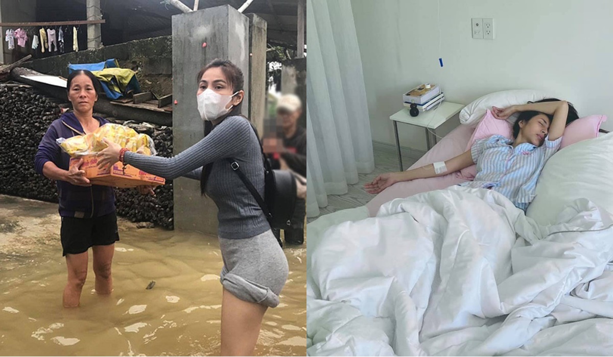 Bức ảnh Thủy Tiên đổ bệnh sau đợt cứu trợ khiến ai cũng xót xa