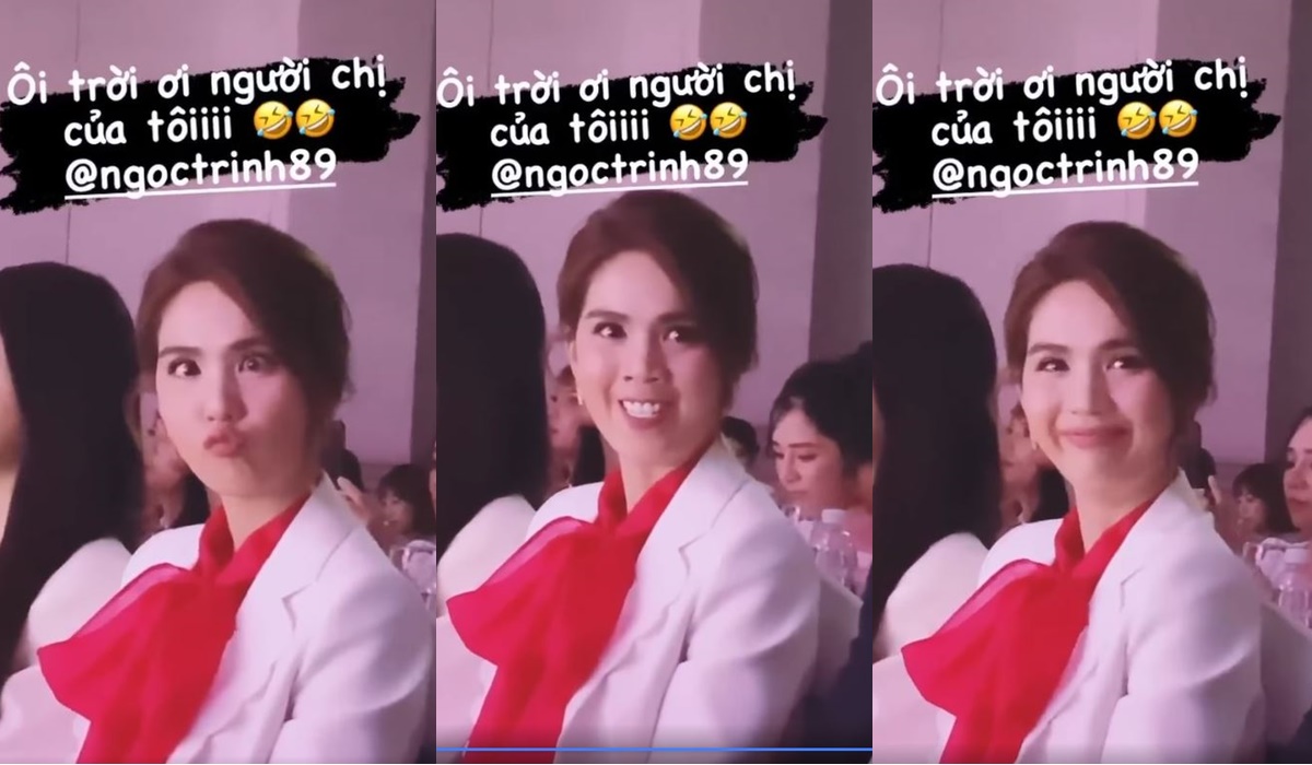 Theo đó, đoạn clip này được 1 người hâm mộ quay trộm Ngọc Trinh khi cô đang ngồi hàng ghế trong sự kiện ngay cạnh Hương Giang. Khi nhận thấy đang bị người hâm mộ quay trộm, Ngọc Trinh đã có phản ứng đầy thú vị.