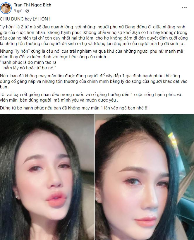 Giữa lúc đang có một cuộc hôn nhân hạnh phúc, Ngọc Bích bất ngờ chia sẻ một bài đăng xung quanh chủ đề ly hôn: