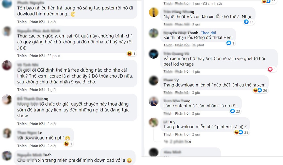 “Trang nào download miễn phí? Rồi có xin lỗi hẳn hoi không mà thấy nói chuyện lách ngôn quá dị? U là trời!”
