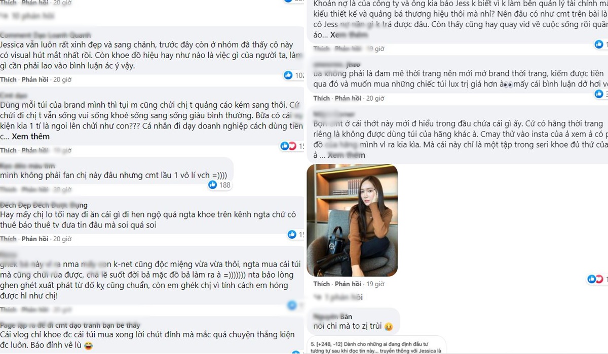 “Biết là không tử tế lắm khi ghét một người nhưng mà tôi nghĩ phải có lý do thì Jessica luôn nhận những bình luận tiêu cực. Là người nổi tiếng thì mua túi nhãn hàng cao cấp không có gì to tát cả, nhưng mà cũng chưa lâu kể từ tin tức về vụ kiện của cô ấy với Tyler Kwon hay gì gì đó nổ ra đâu, nên Jessica phải biết mọi thứ liên quan đến mình bây giờ đều bị soi mói chứ. Khó có thể n g u như cô ấy hiện giờ được…”