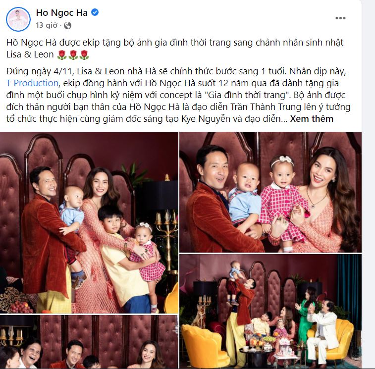 Vào sáng 4/11, trang fanpage của Hồ Ngọc Hà đã chia sẻ loạt bài đăng cũng như hình ảnh để chúc mừng sinh nhật cặp sinh đôi Lisa - Leon tròn 1 tuổi.Đáng nói, Hồ Ngọc Hà cùng chia sẻ 1 đoạn video cả gia đình chuẩn bị cho lễ thôi nôi của cặp sinh đôi.