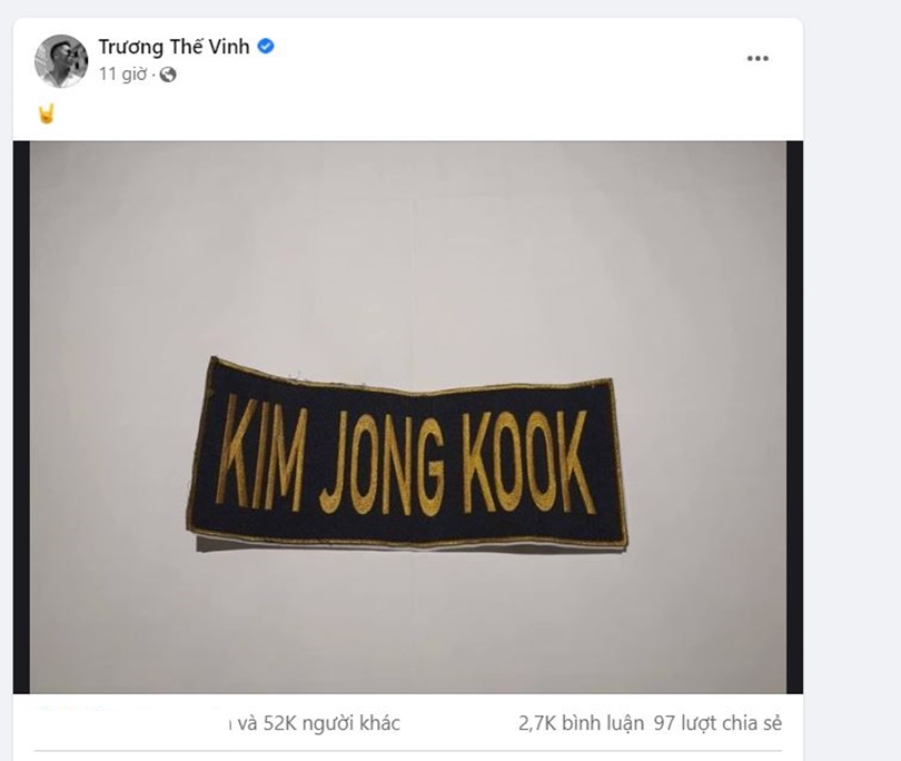Việc có được bảng tên của Kim Jong Kook là ước mơ của bất kỳ ai tham gia Running Man trong tất các phiên bản quốc tế. Vì thế mà Trương Thế Vinh cũng khoe thành quả này trên trang cá nhân.
