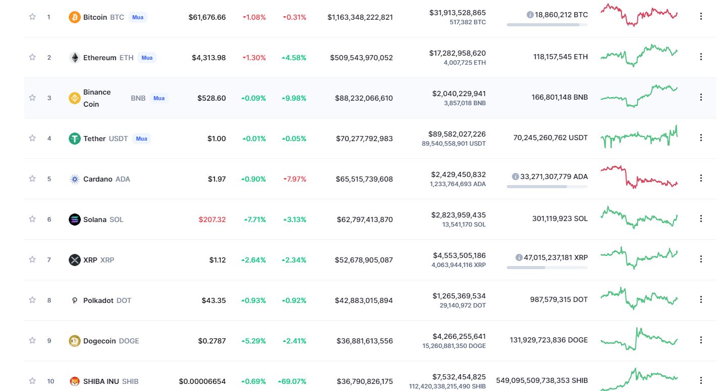 Giá tiền điện tử hôm nay theo vốn hóa thị trường