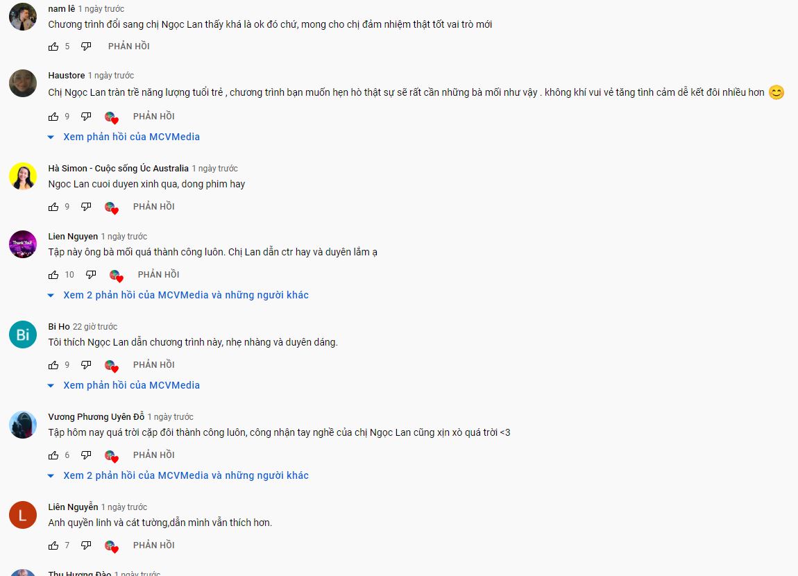 Đáng nói, sau khi tập 741 được đăng tải lại trên Youtube, Ngọc Lan đã nhận về những phản hồi vô cùng tích cực từ cư dân mạng. Theo đó nhiều khán giả đã dành lời khen cho sự duyên dáng, nhẹ nhàng và phù hợp với chương trình Ngọc Lan: