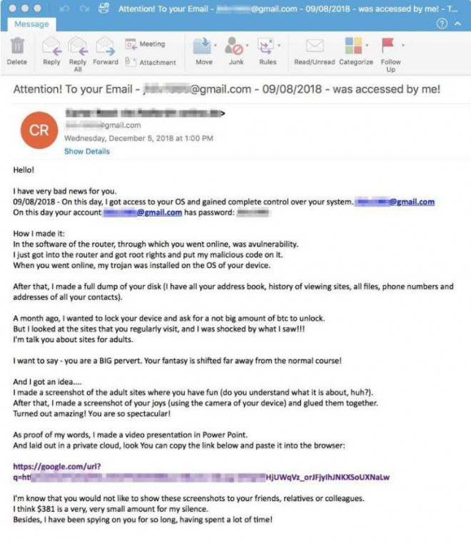 Đây là một hành vi lừa đảo với mục đích lấy tiền của người dùng. Người dùng có thể chặn các email có nội dung đe dọa như trên nhờ vào chế độ lọc thư rác.