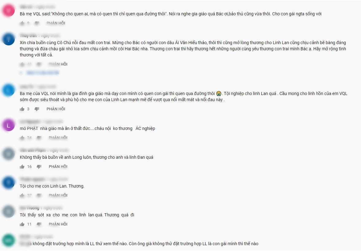 “Ba mẹ của Vân Quang Long nói mình là gia đình gia giáo mà dạy con mình có quen con gái thì quen qua đường thôi. Tội nghiệp cho Linh Lan quá . Cầu mong cho linh hồn của em Vân Quang Long sớm được siêu thoát và phù hộ cho mẹ con của Linh Lan mạnh mẽ để vượt qua nỗi mất mát và nỗi đau này.”