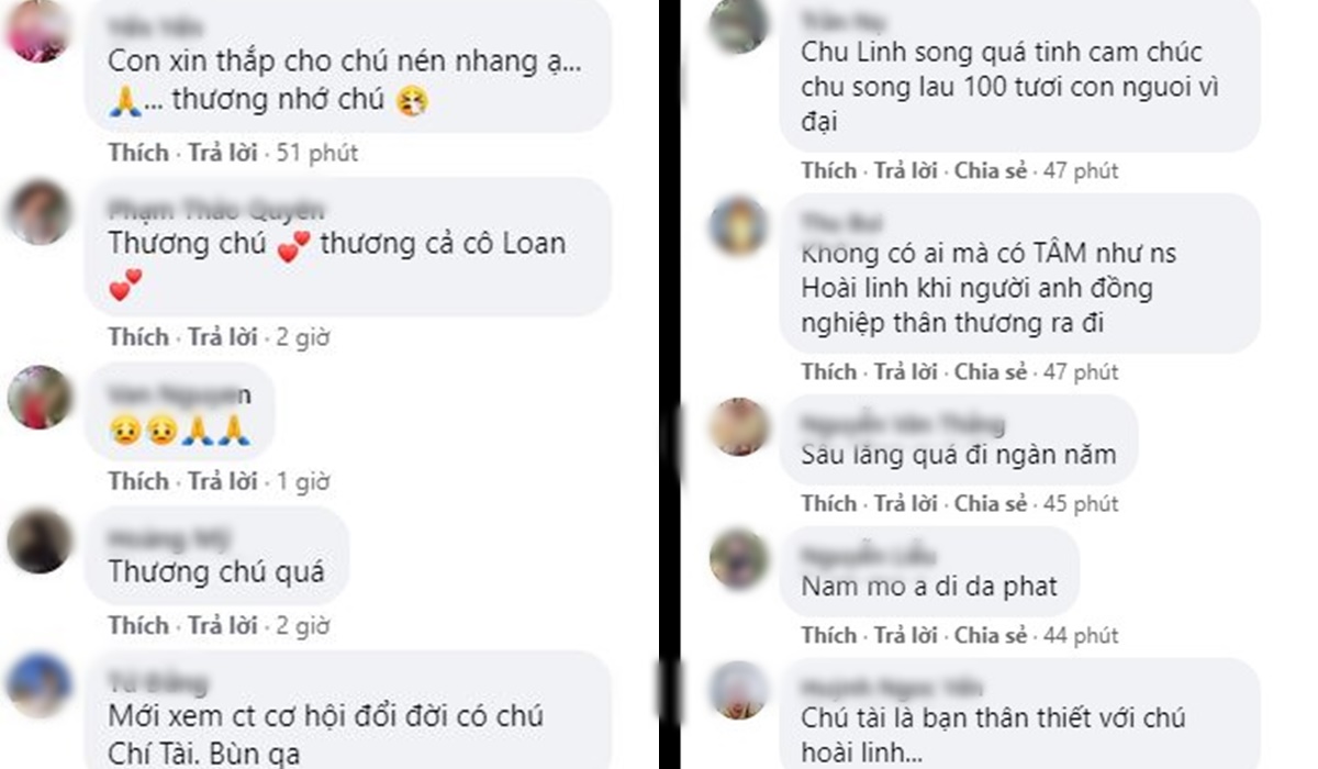 Khi nhìn thấy hình ảnh này, nhiều người thể hiện sự xót xa cho sự ra đi của cố nghệ sĩ Chí Tài đồng thời cũng vô cùng xúc động trước tình cảm mà Hoài Linh dành cho người anh - người bạn tri kỷ suốt 20 năm.