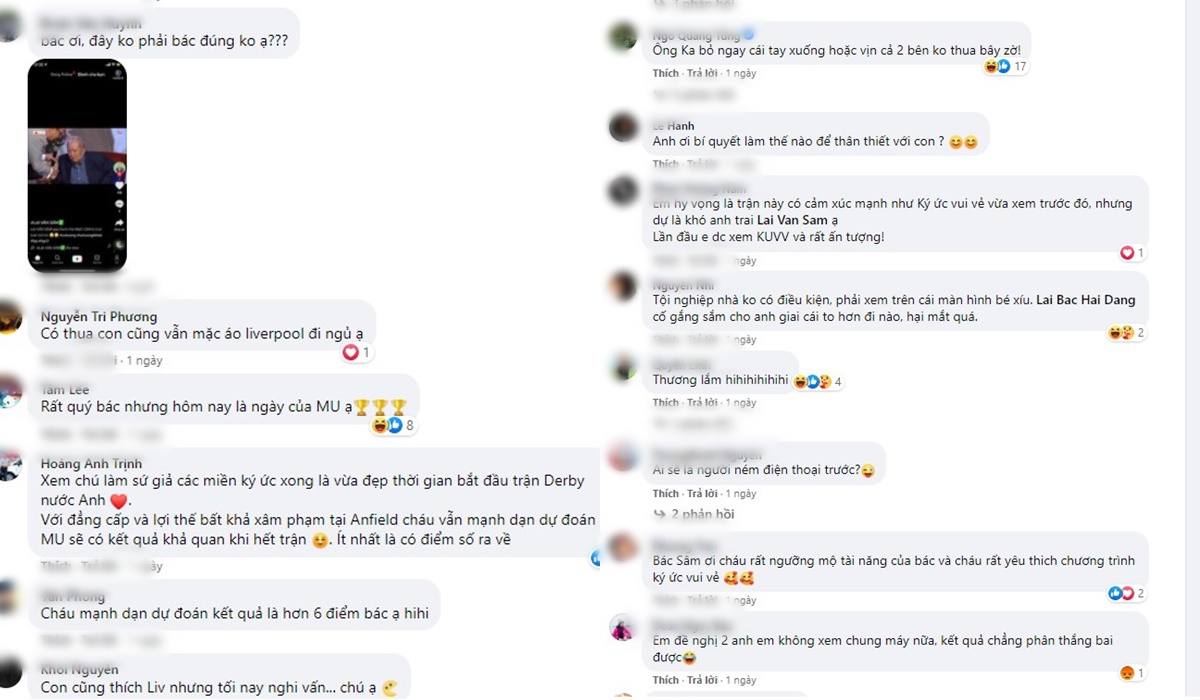 Hình ảnh này cũng được một tài khoản chia sẻ vào các nhóm kín một cách đầy thích thú: “Như anh em đã biết thì bác Lại Văn Sâm là 1 fan trung thành của Liverpool, nhưng con trai bác - anh Lại Bắc Hải Đăng lại đem lòng hâm mộ Quỷ Đỏ thành Manchester