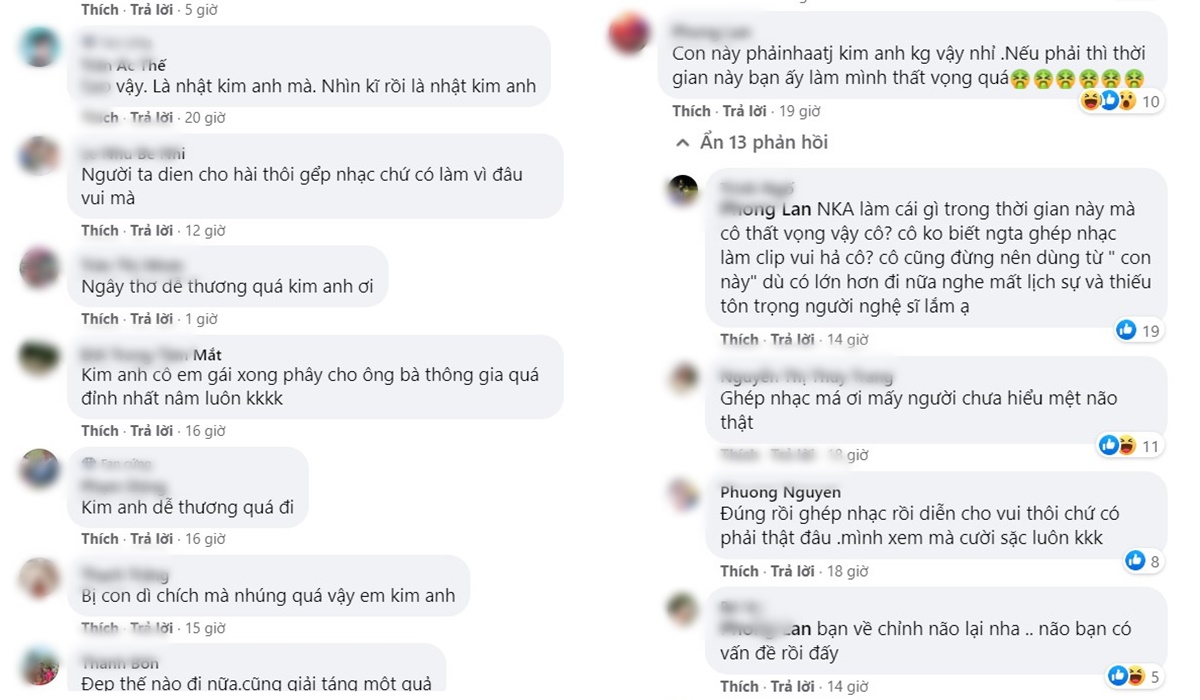Thậm chí có một khán giả lớn tuổi còn thả bình luận đầy bức xúc thậm chí còn gọi nữ ca sĩ là ‘con’ một cách đầy thiếu tôn trọng: “Con này có phải Nhật Kim Anh không nhỉ.Nếu phải thì thời gian này bạn ấy làm mình thất vọng quá!”.