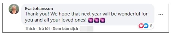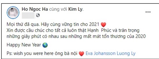 Trước lời nhắn nhủ của Hà Hồ, mẹ đẻ Kim Lý cũng trả lời đầy ngọt ngào: Thank you. We hope that next year will be wonderful for you and all your loved ones" (Tạm dịch: Cảm ơn con. Bố mẹ hy vọng năm mới sẽ là một năm thật tuyệt vời cho con và những người mà con yêu thương).