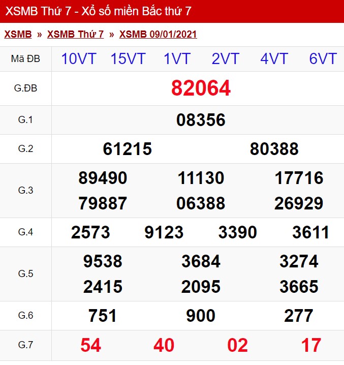Kết quả Xố sổ Miền Bắc XSMB thứ ngày 10/1
