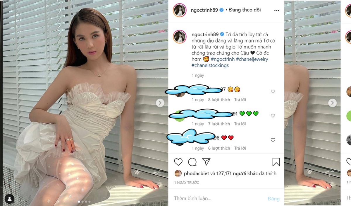 Với tần suất cập nhật hình ảnh liên tục một cách đa dạng mà Ngọc Trinh ngày càng nhận về đông đảo sự thu hút của khán giả. Hiện tại, Ngọc Trinh là nghệ sĩ Việt có đến 5,5 triệu lượt theo dõi trên Instagram, chỉ xếp sau nam ca sĩ Sơn Tùng. Điều này chứng tỏ độ hot của ‘nữ hoàng nội y’ không những không thuyên giảm mà ngày càng gia tăng theo thời gian.