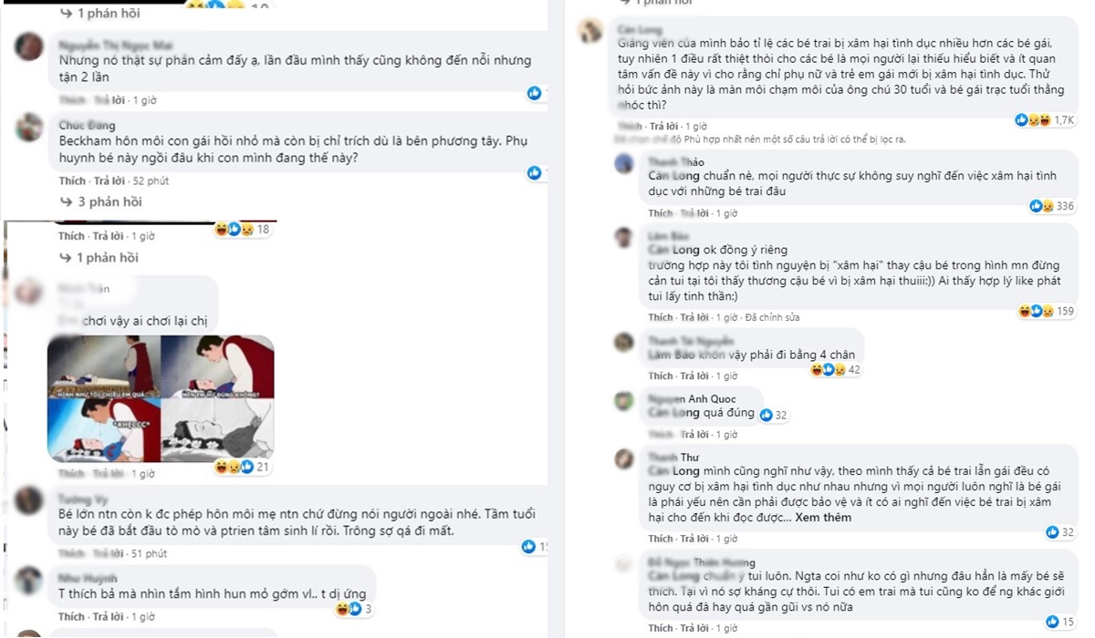“Beckham hôn môi con gái hồi nhỏ mà còn bị chỉ trích dù là bên phương tây. Phụ huynh bé này ngồi đâu khi con mình đang thế này?