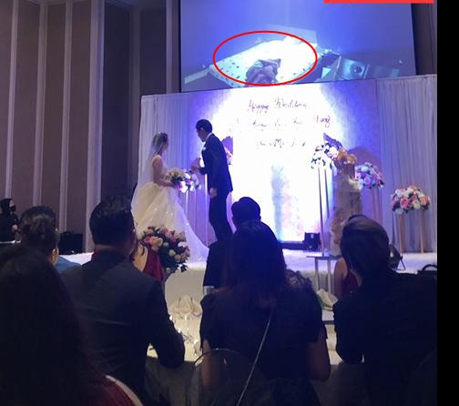 Vào đúng giây phút cô dâu chú rể bước lên sân khấu, đoạn video ân ái của cô dâu đã được chiếu lên màn hình to.