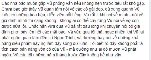 Cụ thể, một người bạn đồng hành trong nhiều năm là ông Nguyễn Văn Phước - nhà sáng lập First News đã tiết lộ về tính cách của ông Đặng Lê Nguyên Vũ với miêu tả là một người khá kín tiếng, ít nói về gia đình và bàng quan trước hàng loạt chân dài, các cô gái xinh đẹp vây quanh.
