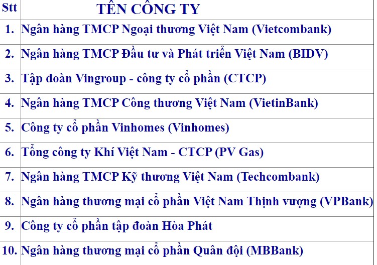 Chia nhau các vị trí dẫn đầu trong danh sách là Vietcombank, BIDV, VietinBank, Vingroup.
