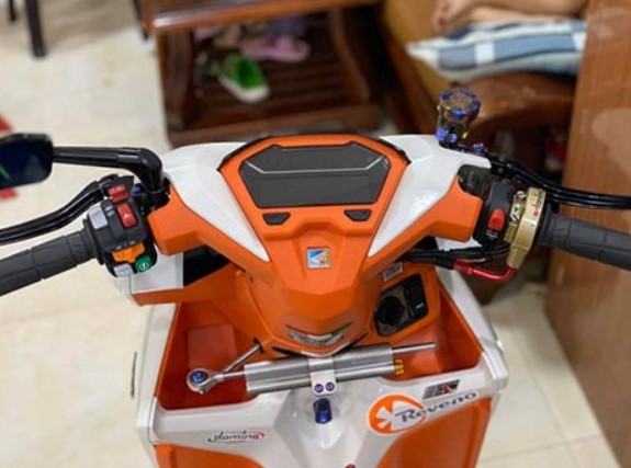 Với mục đích rút ngắn hành trình xe, chủ Honda Vario 150 còn đầu tư bộ cùm tăng tốc Domino ở phái bên phải tay lái, phía trái là cùm Honeywell. Ngoài ra, trợ lực Ohlins kèm cổ được sử dụng để kiểm soát đầu xe và chống sàng lắc. Trang bị chi tiết kèm cả bao tay Ariete.
