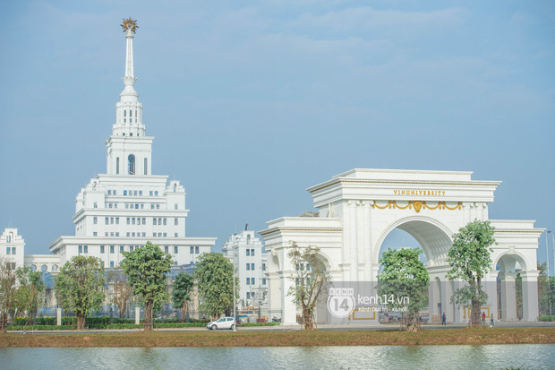 Ngoài chất lượng giáo dục, Vinuni còn gây ấn tượng với phong cách thiết kế châu u sang trọng với nền sơn trắng chủ đạo. Biển hiệu VinUniveristy nổi bật ngay tử cổng đi vào.
