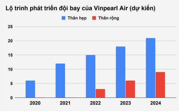 Theo dự án thành lập hãng hàng không Vinpearl Air đã được trình thủ tướng, hãng hàng không của Vingroup dự kiến cất cánh vào năm 2020 và phát triển đội bay lên 30 chiếc sau 4 năm.