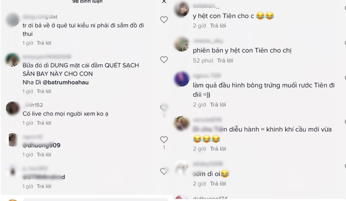 "Dì Dung cho chị Tiên đi diễu hành 1 vòng SG thật hoành tráng nha Dì, Homecoming của hoa hậu hoành tráng như bên Philippines nha Dì"
