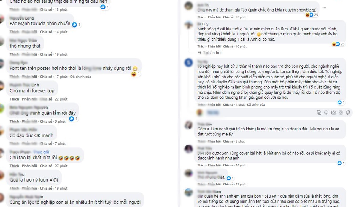 Không chỉ dừng lại ở bài đăng, giọng ca ‘Dẫu có lỗi lầm’ tiếp tục bày tỏ sự phẫn nộ ngay dưới phần bình luận: "Mong là tiếp sau đây, những kẻ nào tố cáo sai sự thật, dựng chuyện để bôi nhọ nhân phẩm và danh dự của người khác, những kẻ cùng ăn lộc tổ nghiệp mà thêm dầu vào lửa, giậu đổ bìm leo để trù dập đồng nghiệp thì trời tru đất diệt - tuyệt tử tuyệt tôn". Những lời lẽ này được netizen nhận xét là quá gay gắt, nặng nề.