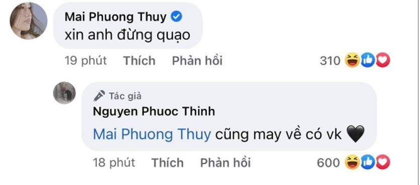 Màn tương tác mới đây trên mạng xã hội của Mai Phương Thúy và Noo Phước Thịnh