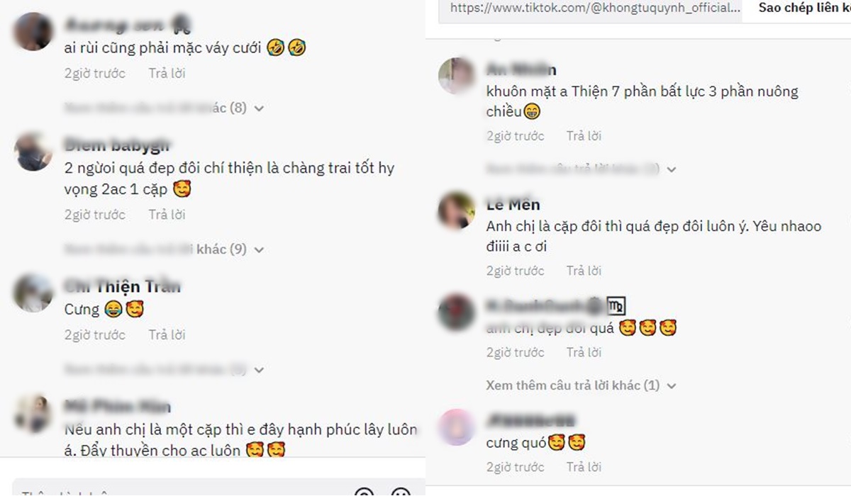 "2 người quá đẹp đôi. Chí Thiện là 1 chàng trai tốt hy vọng hai anh chị 1 cặp"