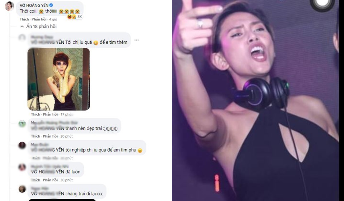 Đáp lại sự “nhiệt tình” của người hâm mộ, Võ Hoàng Yến lại để lại bình luận “cầu xin” cư dân mạng tha cho mình và dừng ngay lại hành động khui ảnh quá khứ . Cụ thể người đẹp viết: “Thôi coiii! thôiiiii ” với hàng loạt icon khóc nước mắt thành sông. Tuy nhiên, không hổ danh 'Thần tượng nào fan nấy', người hâm mộ vẫn tiếp tục 'lầy lội' khi liên tiếp thả những bức hình trong quá khứ của Võ Hoàng Yến, nhìn mà chỉ muốn chảy nước mắt.