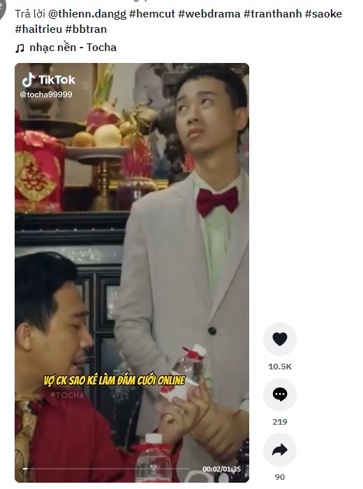 Trong tập mới đây của Hẻm cụt, khán giả vô cùng bất ngờ với lời thoại của nhân vật Trấn Thành đóng tuần này có nhắc tới “sao kê”. Cụ thể, câu chuyện tuần này kể về hai bên gia đình tổ chức đám cưới online cho chú rể tên Kê với cô dâu tên Sao, được “ông chủ hôn Trấn Thành” hài hước gọi tắt “hai cháu Sao Kê”.