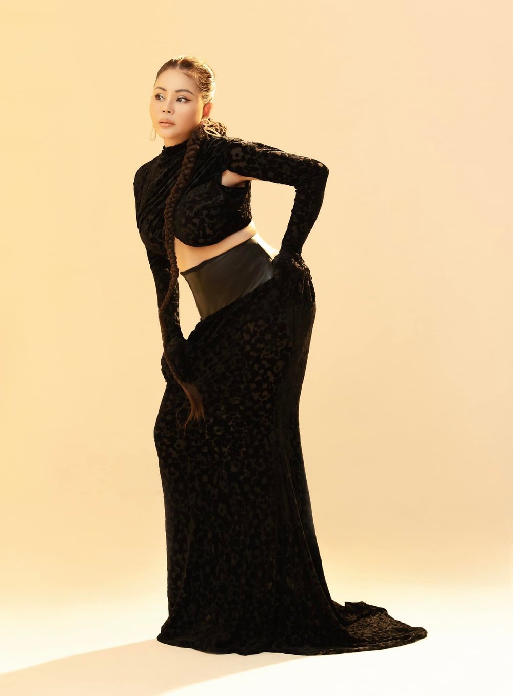 Còn nhớ, trước đó ngày 9/1, nữ nghệ sĩ diện thiết kế bodysuit kín trên hở dưới, khoe khéo vòng 3 đốt mắt người xem. Cho tới hôm nay, chưa đầy một tuần, Lê Giang tiếp tục tung ra bộ ảnh hở trên, kín dưới, khoe vẻ trẻ trung, gợi cảm.