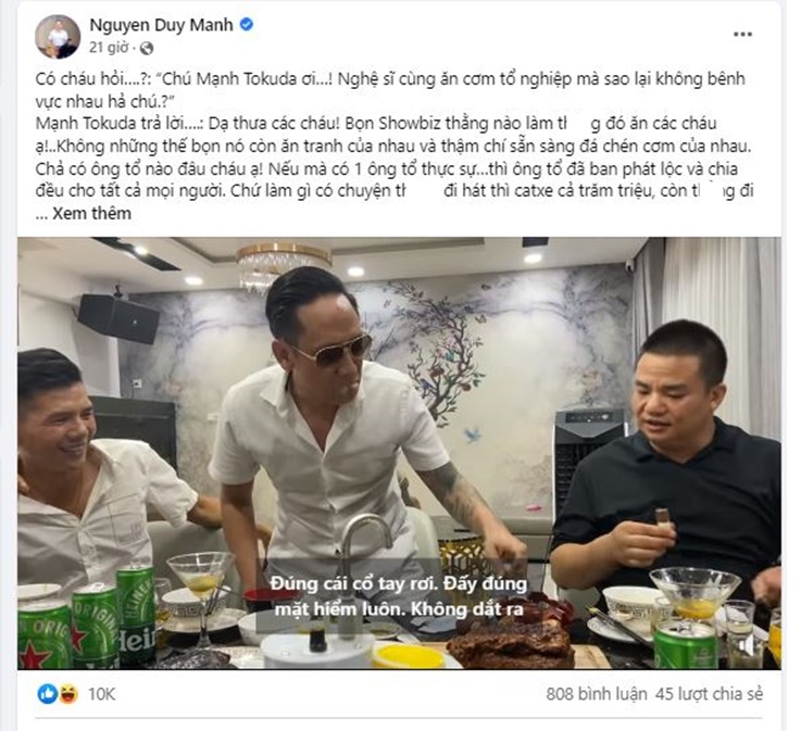 "Có cháu hỏi….?: “Chú Mạnh Tokuda ơi…! Nghệ sĩ cùng ăn cơm tổ nghiệp mà sao lại không bênh vực nhau hả chú.?”