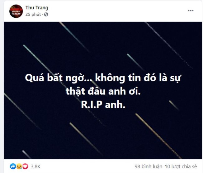 Không chỉ cư dân mạng mà ngay cả những nghệ sĩ thân thiết đều sốc nặng trước hung tin này, nhiều danh hài đã thể hiện sự đau xót trước sự ra đi của đàn anh trong nghề.