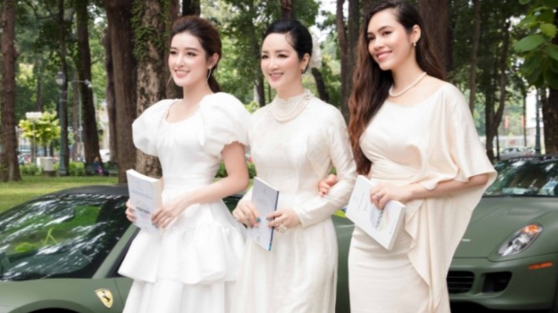 Nhờ ngoại hình xinh đẹp trẻ trung nên dù là ‘chị đại’ trong dàn chân dài được siêu xe của Ông Đặng Lê Nguyên Vũ đưa đón trong suốt ‘Hành trình trái tim’ nhưng Giáng My không hề kém nổi bật so với loạt mỹ nhân đình đám như Hoa hậu Mai Phương Thúy, Á hậu Huyền My, Hoa hậu Tiểu Vy.