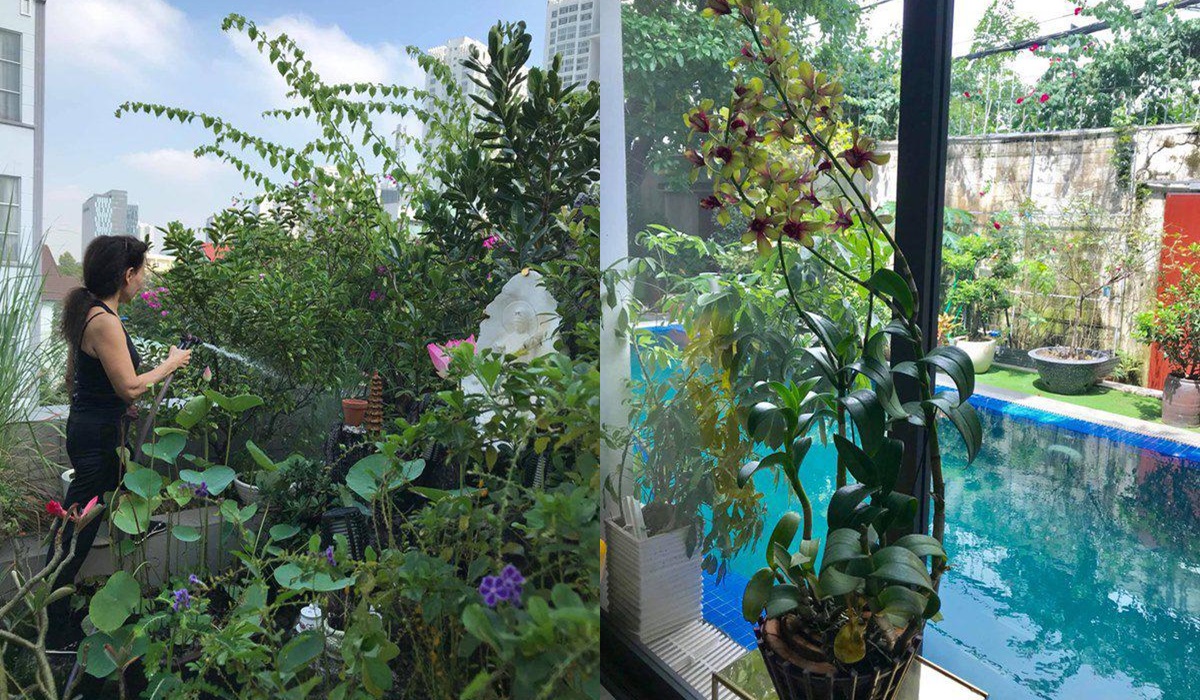 Đáng nói, trong rất nhiều hình ảnh và video đăng tải đã cho thấy căn biệt thự của Hà Hồ rất nhiều cây xanh, thậm chí có cả khu vườn và hồ bơi đầy thư giãn. Không gian để tập Yoga cũng như tụ tập bạn bè ngay cạnh hồ bơi cũng vô cùng rộng rãi. Đáng nói, khu vườn nhà Hồ Ngọc có đủ loại cây từ hoa, cây cảnh, cây hương liệu chẳng khác gì một kho báu giữa thành phố.