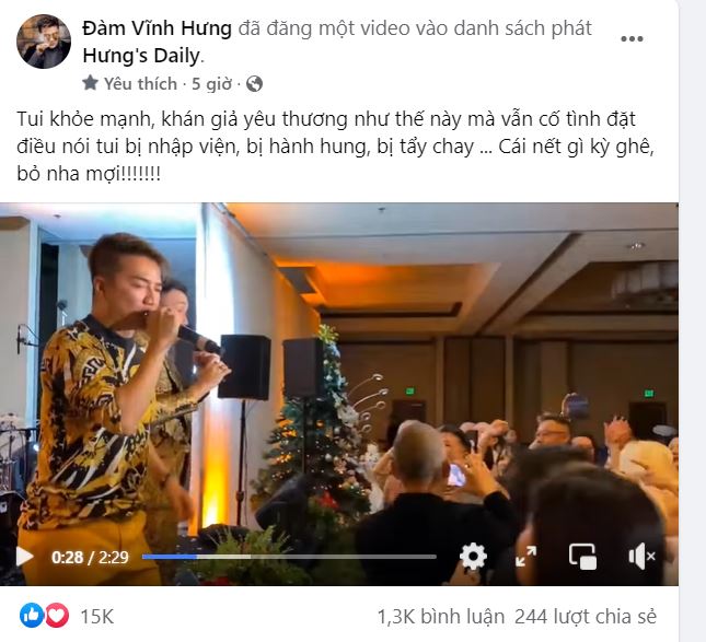 Trước đó, Đàm Vĩnh Hưng còn viết một đoạn tâm thư dài trên trang cá nhân vì quá bức xúc, anh viết:
