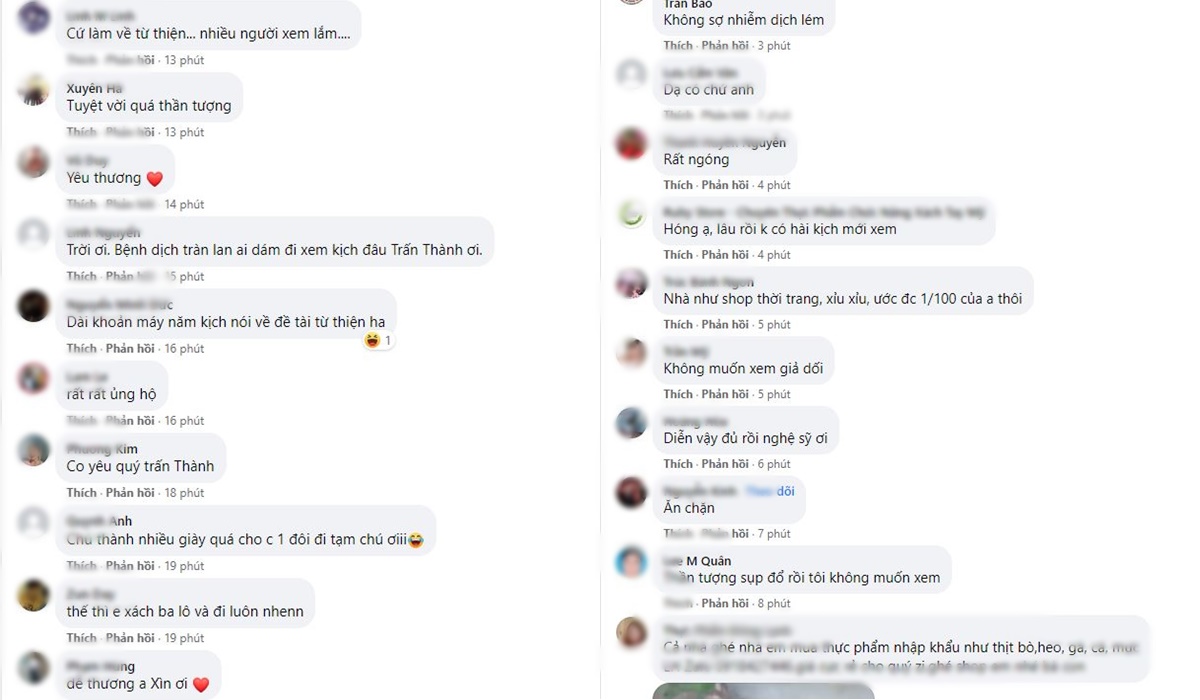 Song không ít người vẫn còn ‘hiềm khích’ với nam MC từ ồn ào từ thiện miền Trung, dưới bài đăng có rất nhiều comment khiếm nhã: "Lần này chắc anh Trấn Thành đi hơi lâu đó. Tranh thủ cho mọi người xem lần cuối nha anh.", "Chắc ít người xem lắm, nhớ cân nhắc nhé!"