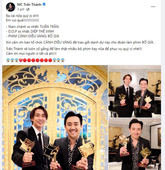 Trên trang cá nhân Trấn Thành không giấu nổi niềm vui và xúc động. Anh chia sẻ: