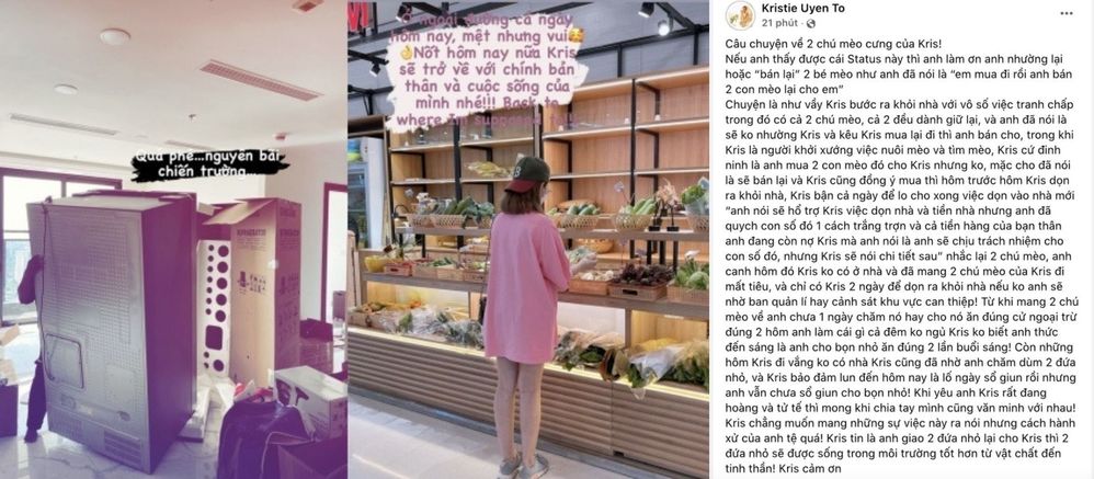 Uyên Tô chia sẻ trước đó Anh Đức đã hứa hỗ trợ tiền nhà cho cô sau khi chia tay nhưng bạn trai không thực hiện, thậm chí còn quỵt tiền bạn thân cô. Ngoài ra, cả 2 cũng có nuôi chung một chú mèo trước đó. Uyên Tô muốn nuôi lại mèo nhưng Anh Đức cũng không cho. Liên tục bị người yêu cũ réo tên, Anh Đức vẫn một mực im lặng.