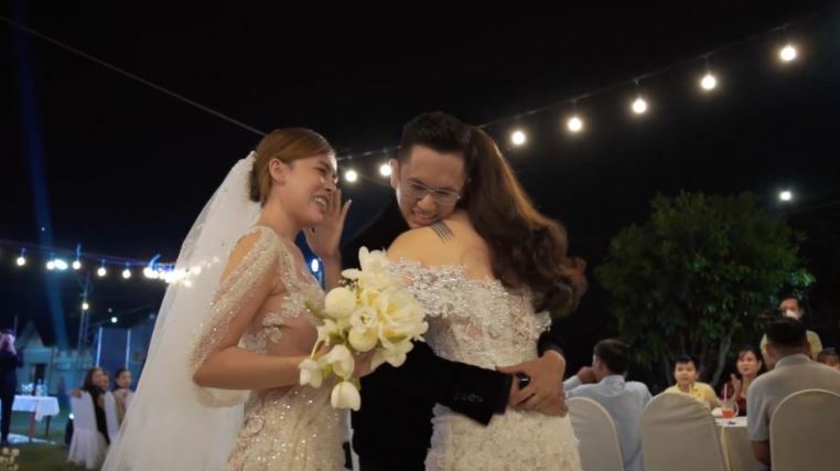 Khi nghe lời tâm sự của người chị, chú rể không cầm được nước mắt. Lộc Diêm cảm ơn Nhật Kim Anh và tất cả những người đã giúp đỡ mình trong ngày trọng đại.