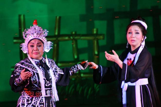“Ai mà giọng yếu đứng chung với cô Bảy là “sập" luôn. Trong chuyến lưu diễn đó, bạn nhận hai nhiệm vụ, một là vai bà Hương, hai là cô Bảy cán vá" - Bạch Tuyết hài hước chia sẻ về người bạn của mình.