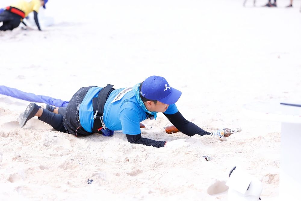 Khi đạo diễn hô chỉ còn 30 giây nữa, dù chỉ vừa mới xuất phát nhưng Trường Giang vẫn chạy thục mạng cho đến lúc bị trượt chân té xuống bãi cát.