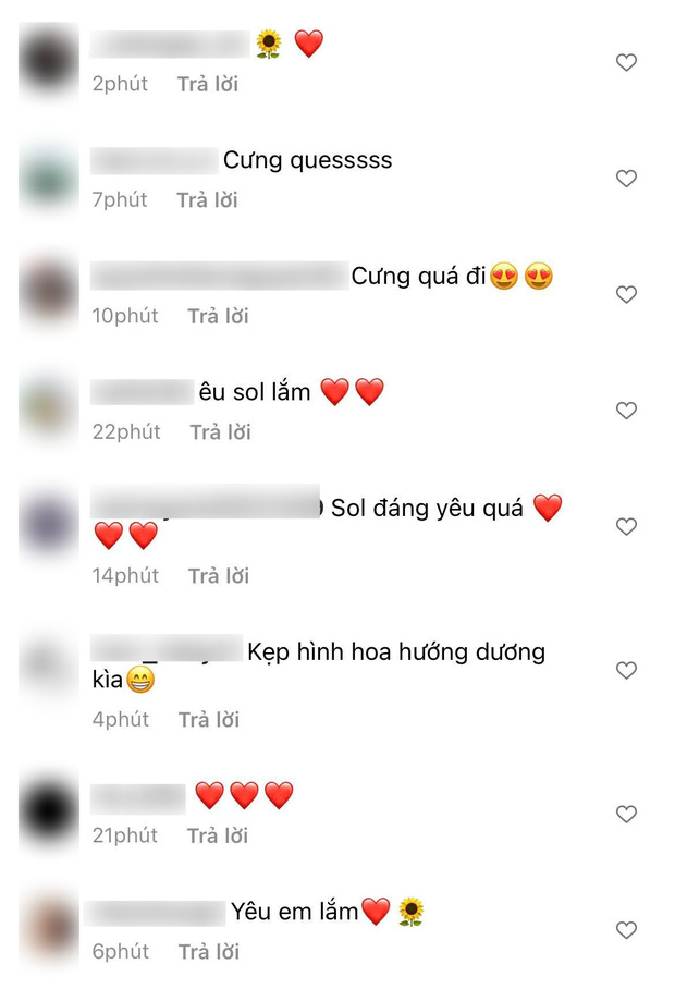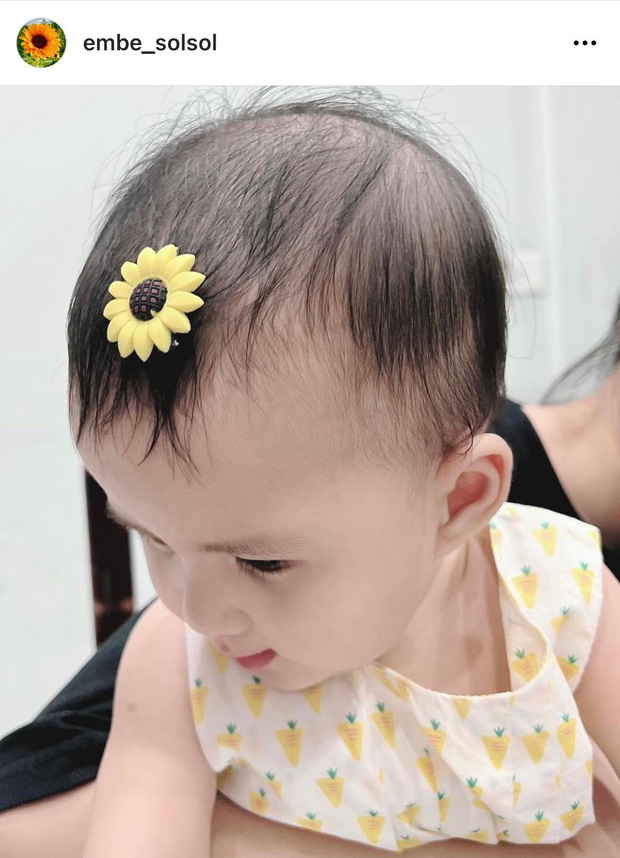 Đặc biệt, trong khung hình mới nhất, netizen đã soi ra chi tiết có liên quan đến bố đẻ của Sol. Cụ thể, bé Sol diện một chiếc váy họa tiết "điệu ơi là điệu" khác biệt so với những bức ảnh trước, trên mái tóc lưa thưa còn có chiếc kẹp hoa hướng dương xinh xắn.