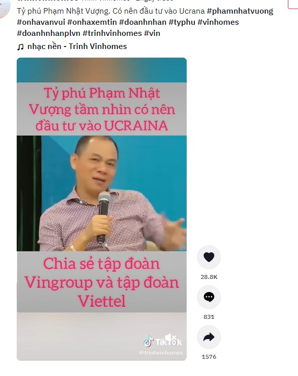 Mới đây nhất, tên mạng xã hội tiktok bất ngờ chia sẻ lại đoạn clip tỷ phú Phạm Nhật Vượng trong buổi tọa đàm với Tập đoàn viễn thông Viettel đã đưa ra tiên đoán trước về tình hình Ukraina có thể đối mặt ngày hôm nay.
